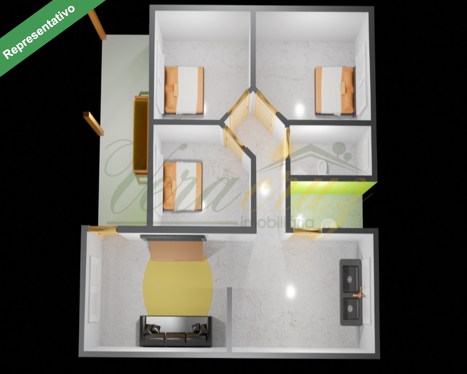 3 Dormitórios1 Banheiro1 Sala de estar